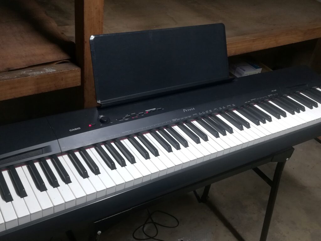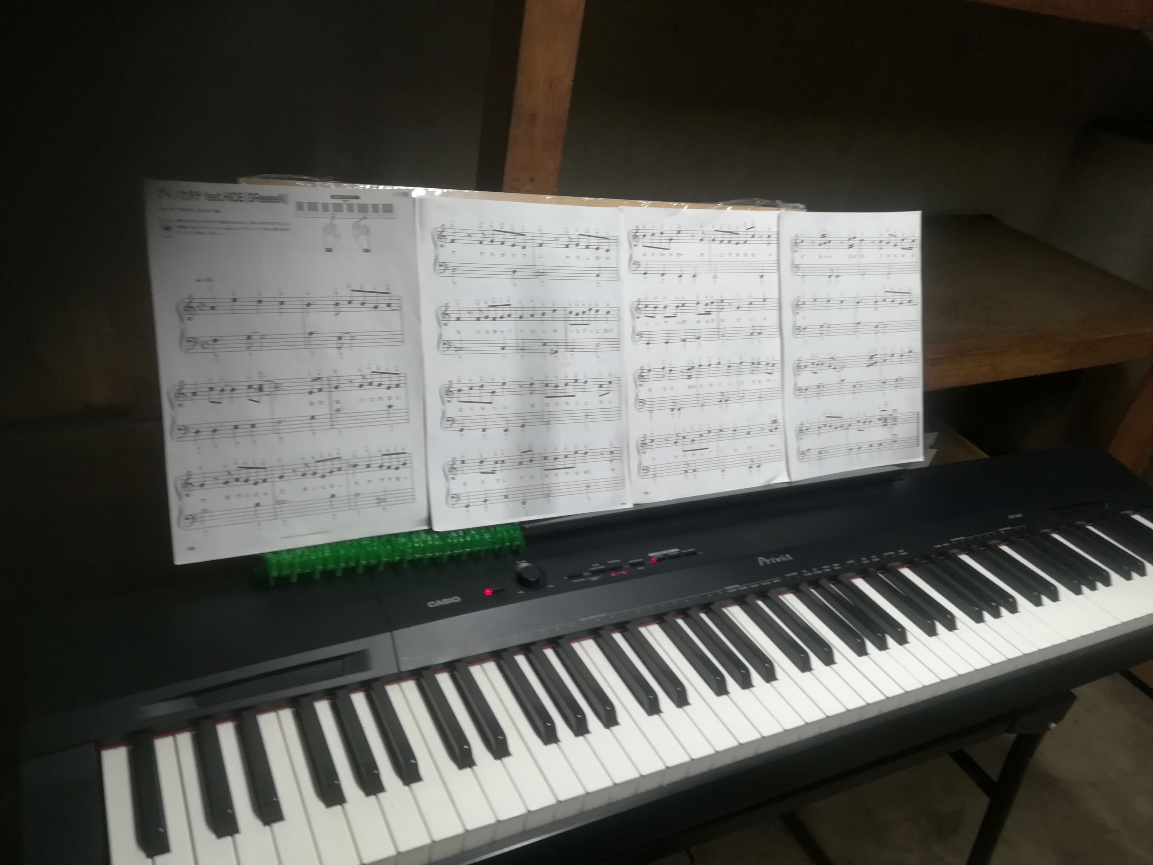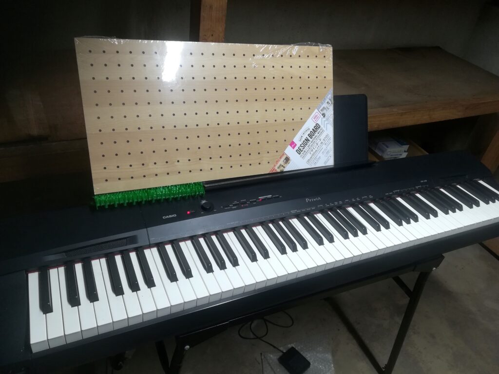 私が使っている電子ピアノの譜面台はあまり大きくなくて、楽譜を3枚置くのがギリギリです。